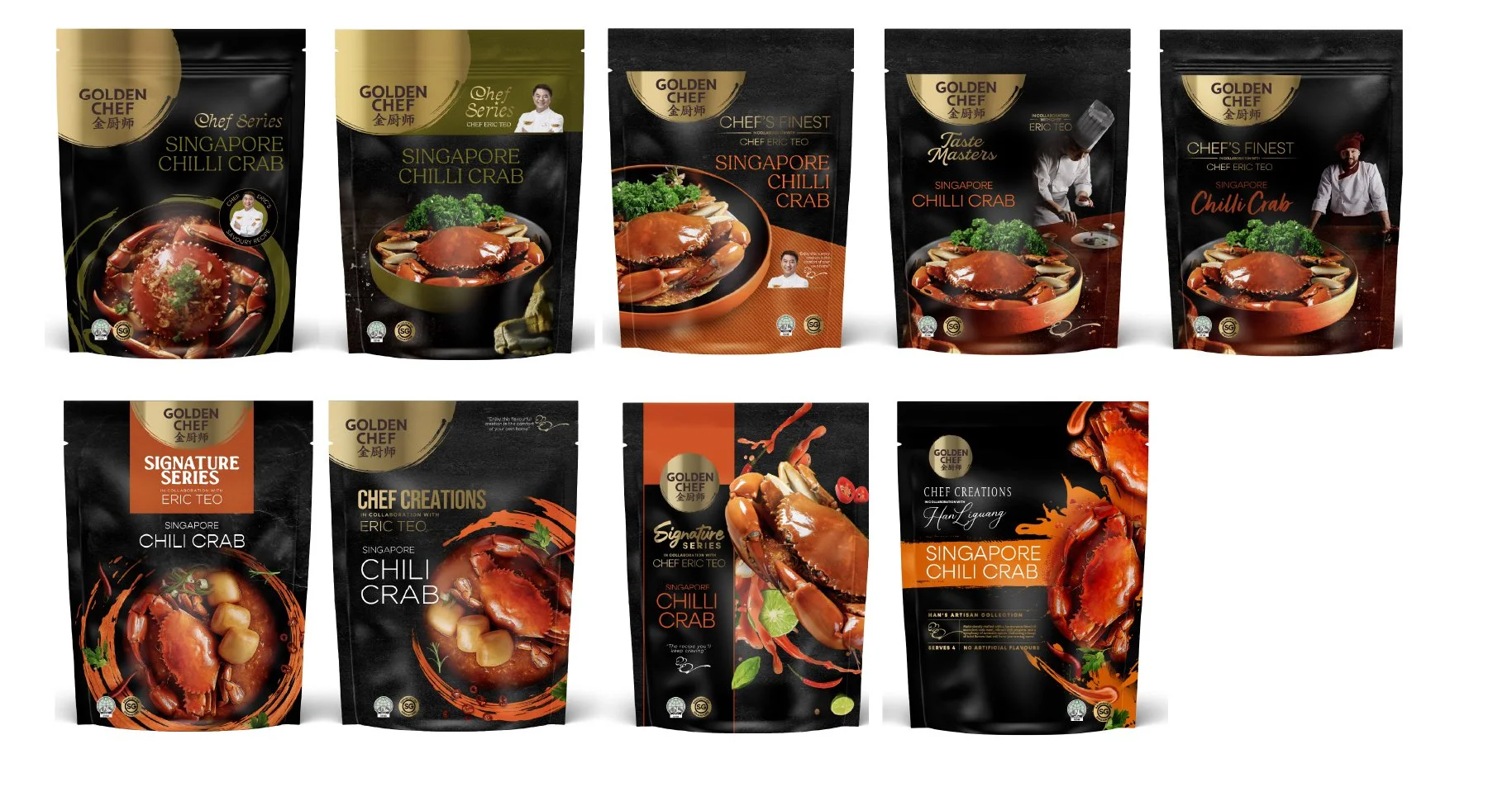 Currently, there are few competitors offering a premium range in the market, with black serving as the predominant category color for premiumization among those that do. Traditional depictions of food typically showcase final dishes with minimal ingredients, while warm color tones and white are predominantly utilized for Chili Crab variants.